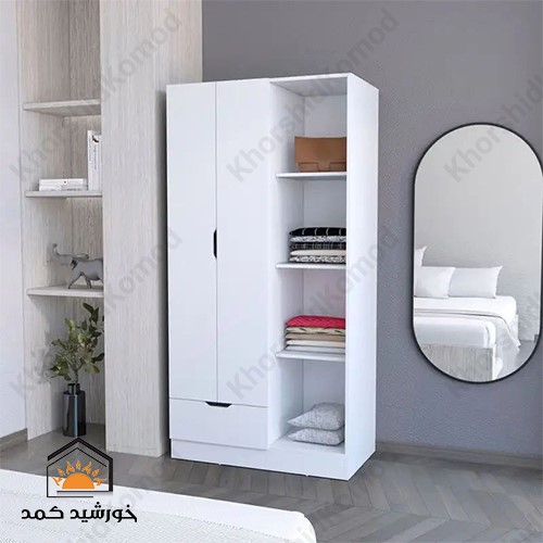 - یک در و سه قفسه: کمد مدل سرو دارای یک در است که به شما این امکان را میدهد تا به راحتی به محتوای داخل کمد دسترسی پیدا کنید. همچنین، سه قفسه داخلی به شما کمک میکند تا وسایل خود را به خوبی سازماندهی کنید. این قفسهها مناسب برای نگهداری لباسها، کتابها، لوازم جانبی و سایر اقلام شخصی هستند.