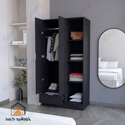 - رنگبندی متنوع: این کمد در دو رنگ مشکی و سفید عرضه میشود. رنگ مشکی به آن ظاهری لوکس و مدرن میبخشد، در حالی که رنگ سفید باعث ایجاد حس روشنی و فضای باز در اتاق میشود. این تنوع رنگ به شما این امکان را میدهد که کمد را با سایر مبلمان و دکوراسیون منزل خود هماهنگ کنید.