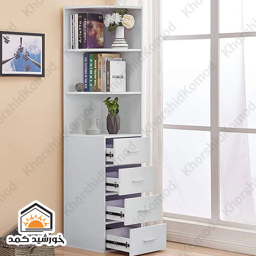 جنس این کتابخانه از نئوپان فومنات با روکش ملامینه است که علاوه بر زیبایی، دوام و استحکام بالایی دارد. دستگیره‌های گراد و ریل‌های ساچمه‌ای سه زمانه، کاربری آسان و راحتی را برای شما به ارمغان می‌آورند.