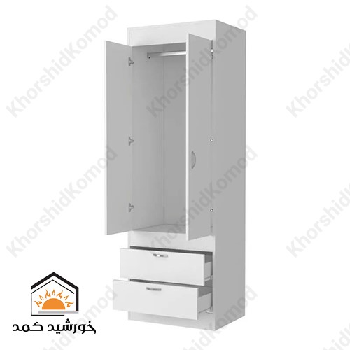 - کمد برازنده دارای دو کشو است که برای نگهداری وسایل کوچکتر مانند لباسهای زیر، لوازم جانبی و سایر اقلام شخصی بسیار مناسب است. این کشوها به شما کمک میکنند تا وسایل خود را به خوبی سازماندهی کنید و از گم شدن آنها جلوگیری کنید.