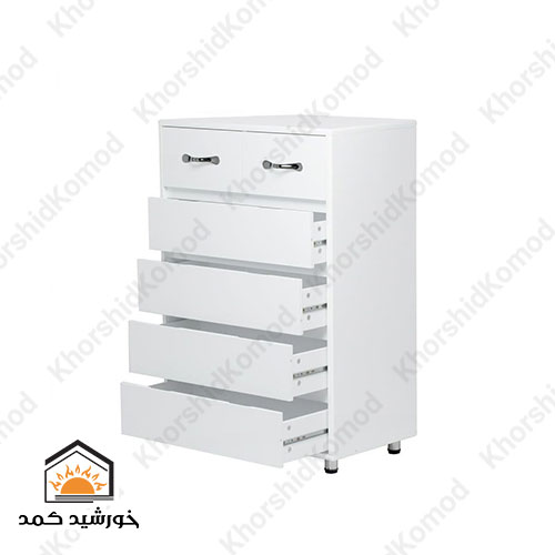 جنس این دراور از نئوپان فومنات با روکش ملامینه است که علاوه بر زیبایی، دوام و استحکام بالایی دارد. دستگیره‌های مخفی و ریل‌های ساچمه‌ای سه زمانه، کاربری آسان و راحتی را برای شما به ارمغان می‌آورند.