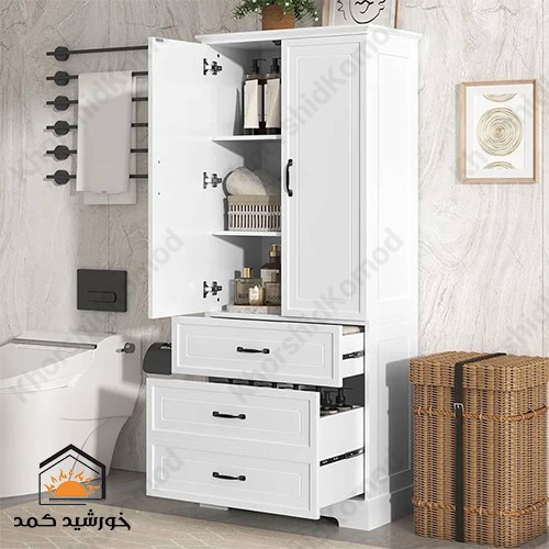 - درب و دو کشو: علاوه بر کشوها، کمد ملودی دارای دربهایی است که فضای داخلی را به خوبی پوشش میدهد. این دربها به شما این امکان را میدهند که وسایل بزرگتر را به راحتی درون کمد قرار دهید.