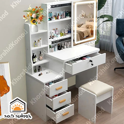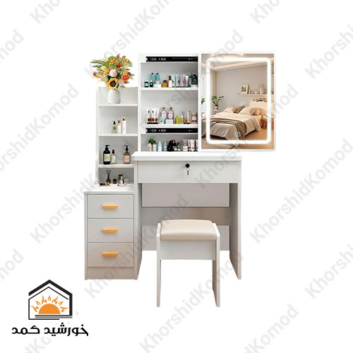 میز آرایش رسپینا امکان بازدید حضوری و سفارشیسازی رنگ و ابعاد را دارد تا به بهترین شکل با دکوراسیون منزل شما هماهنگ شود. با انتخاب میز آرایش مدل رسپینا، فضایی شیک و منظم برای آرایش و زیبایی خود ایجاد کنید.