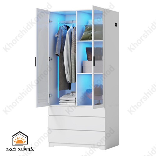 - نورپردازی: یکی از ویژگیهای منحصر به فرد کمد رزانا، سیستم نورپردازی آن است. این نورپردازی به شما این امکان را میدهد که محتویات داخل کمد را به راحتی مشاهده کنید و به زیبایی کمد افزوده میشود. نورپردازی میتواند به ایجاد فضایی دلنشین و آرامشبخش در اتاق کمک کند و به شما این امکان را میدهد که در شب به راحتی به لباسها و لوازم خود دسترسی داشته باشید.